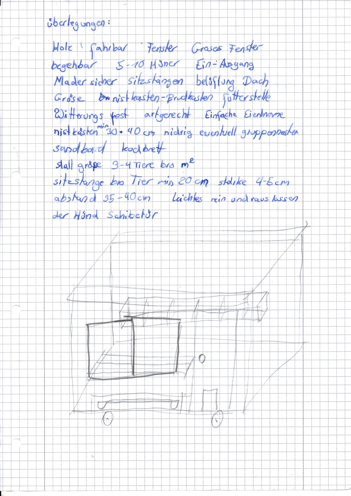 Nach unseren Überlegungen haben wir beschlossen, dass unser Hühnerstall aus verschieden Gründen fahrbar werden soll.